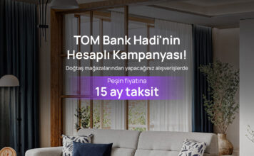 Doğtaş, TOM Bank Hadi iş birliğiyle mağazalarda geçerli peşin fiyatına 15 ay vade imkânı sunuyor; ev kurma sürecinde olanlara bütçelerini zorlamadan alışveriş yapma fırsatı...