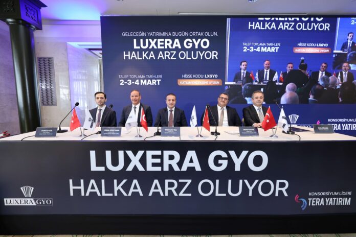 Türkiye’nin önde gelen gayrimenkul şirketlerinden Luxera GYO, konut sektöründeki birikimini sermaye piyasalarına taşımaya hazırlanıyor.7 milyar TL’yi aşan portföy büyüklüğüne sahip şirketin halka arzında talep toplama tarihleri, 2-3-4 Martolarak belirlendi. Luxera GYO, Tera Yatırım liderliğinde gerçekleşecek olan halka arzın detaylarını ve gelecek dönem planlarını düzenlediği bir basın toplantısıyla paylaştı. ToplantıLuxera GYO Yönetim Kurulu Başkanı Ramazan Taş, Yönetim Kurulu Başkan Vekili EmadRagab, Yönetim Kurulu Üyesi Cemal Süleyman ve Tera Yatırım Genel Müdür Yardımcısı Furkan Gün’ün katılımıyla gerçekleştirildi.